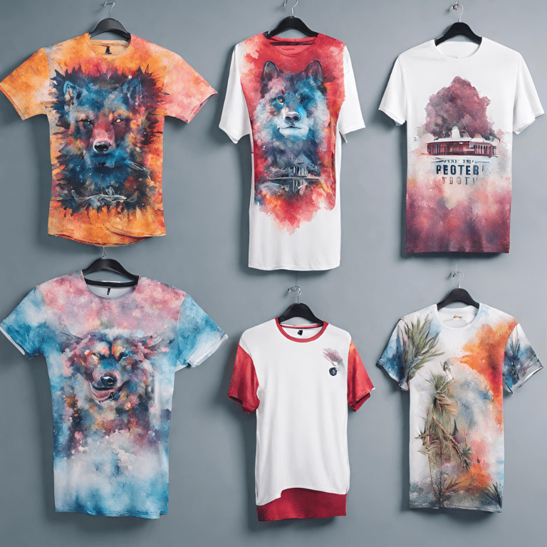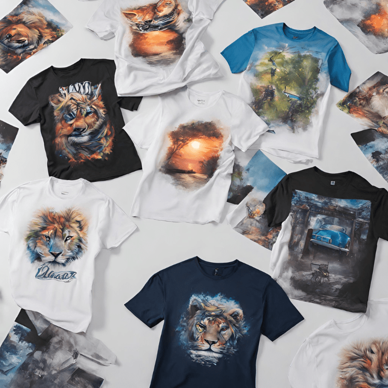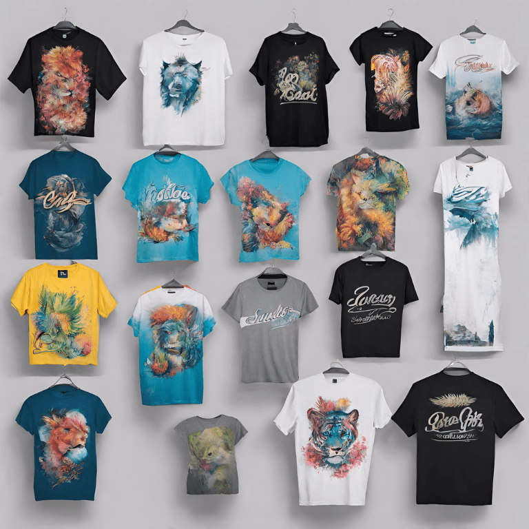 Camisetas com designs completos.